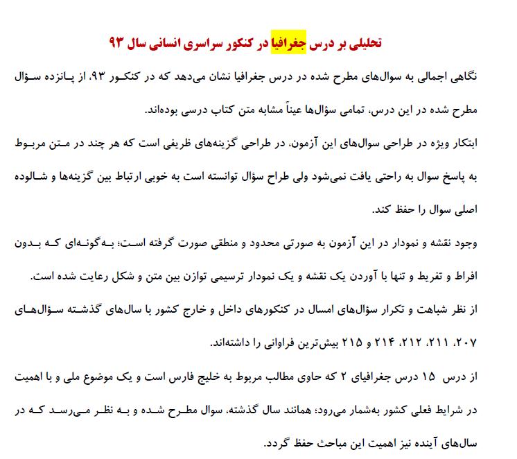 تحلیل درس جغرافیا در کنکور سراسری انسانی 93