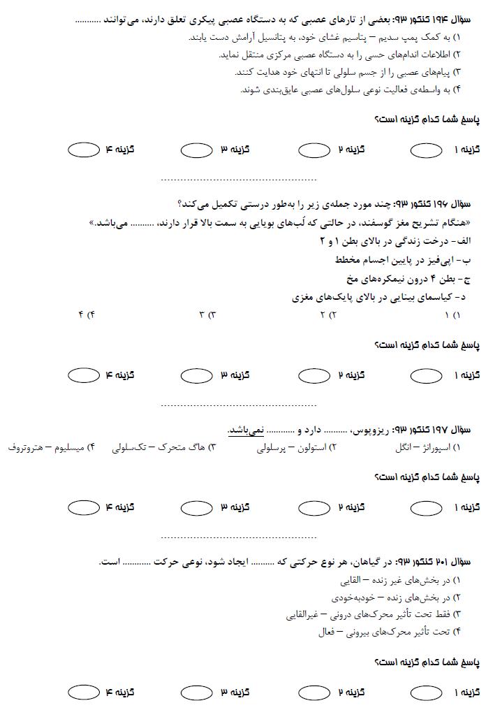 در اين سؤالها استفاده كنيد و دقت خود را در هنگام پاسخگويي به سؤالهاي چهارگزينهاي افزايش