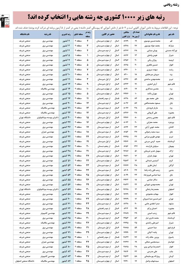 رتبه های زیر 10000 کنکور 93 ریاضی