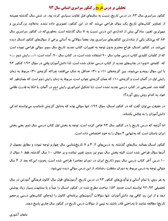 ماهان آشوری؛ تحلیلی بر درس تاریخ در کنکور انسانی 93