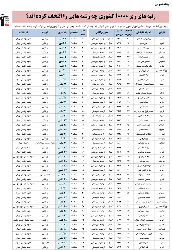 10000 نفر برتر کنکور تجربی چه رشته هایی را برای ادامه تحصیل انتخاب کردند؟