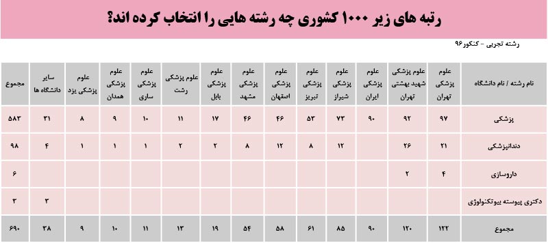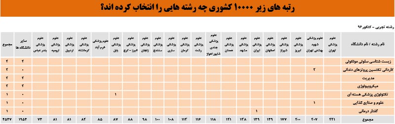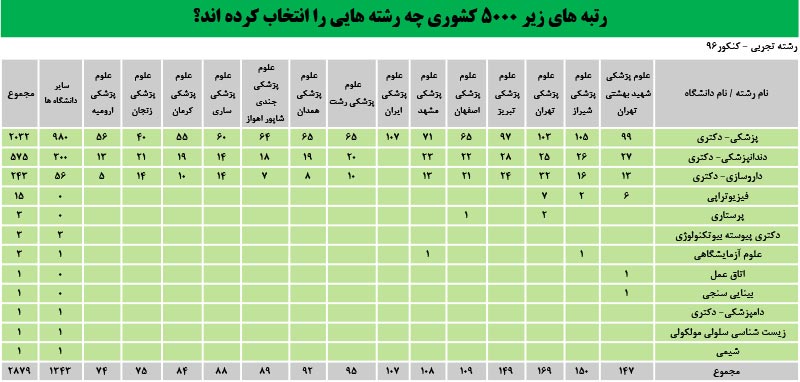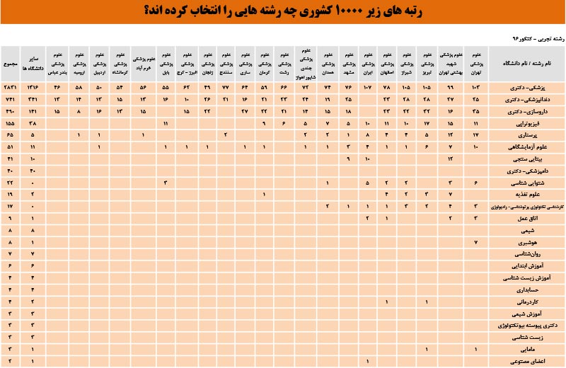 در این قسمت براساس آمار قبولی ها کانون در کنکور تجربی 96 ،پرطرفدارترین رشته های دانشگاهی را مشاهده می کنید.