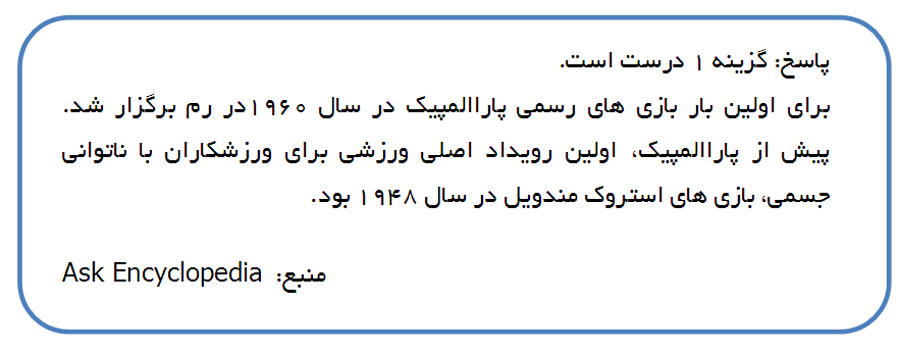 برای اولین بار مسابقات پارا المپیک در چه سالی برگزار شد؟