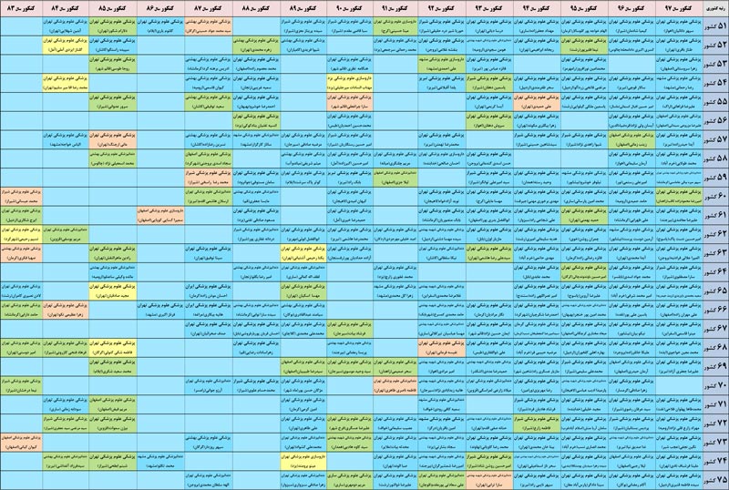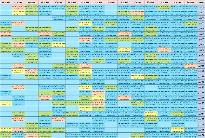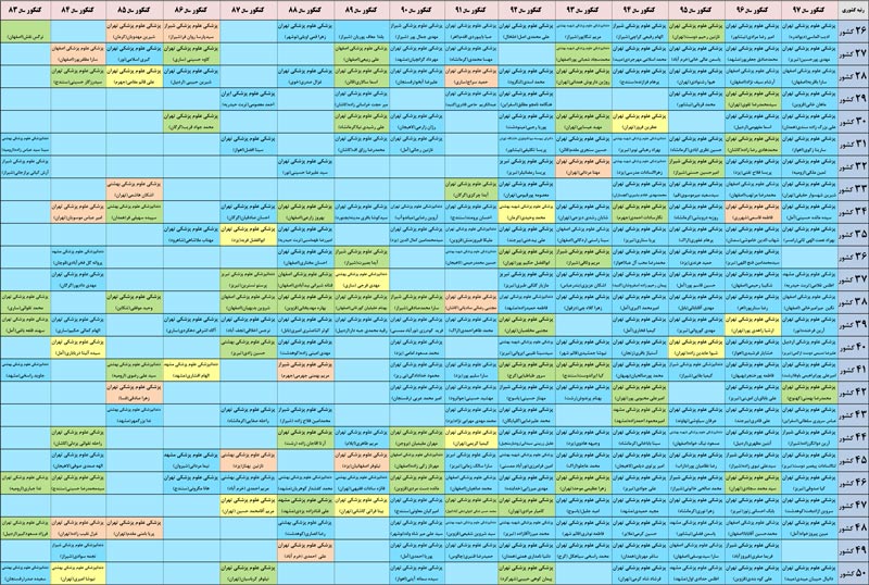 این اطلاعات مربوط به رتبه های برتر کانون در سال های قبل است.