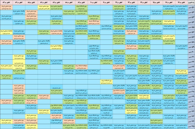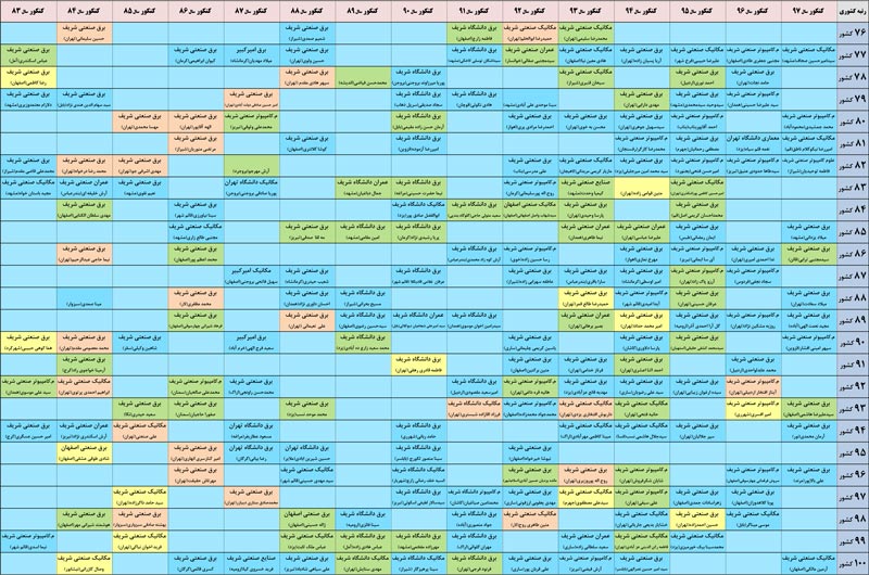 این اطلاعات مربوط به رتبه های برتر کانون در سال های گذشته است.