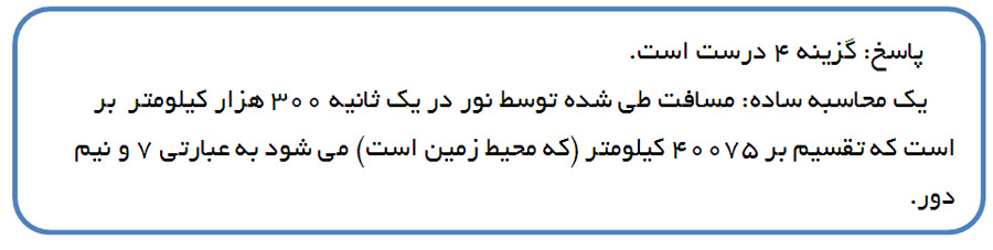 اگر قرار باشد یک پرتو نور به یک مسافرت بر روی خط استوا برود در یک ثانیه چه کسری از محیط زمین را طی خواهد کرد؟