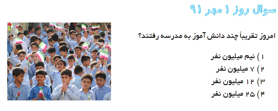 اگر شما نیز دوست دارید سؤال خود را از دیگران بپرسید آن را به آدرس reza.razavi@kanoon.ir ارسال نمایید تا در صورت پذیرفته شدن با نام شما در قسمت سؤال روز گذاشته شود.