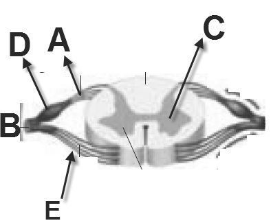 الف) جسم سلولی تارهای موجود در قسمت E ، در ماده خاکستری هست.