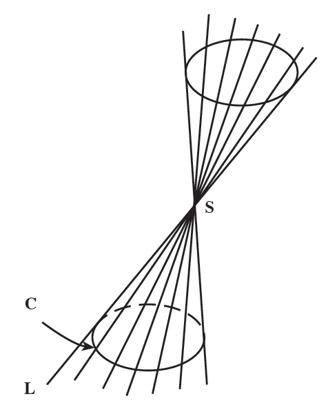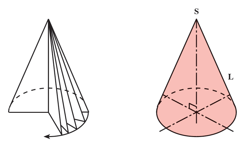 اگر خطی مانند L به گونهای در فضا حركت كند كه همواره از نقطهی ثابتی مانند S بگذرد و بر یك منحنی ثابت مانند C متكی باشد، سطح مخروطی ساخته میشود. خط L را مولد و منحنی C را راهنما مینامند.
