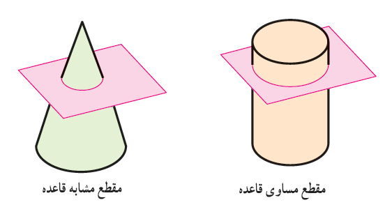 استوانه و مخروط، از اجسام یكانحنایی به شمار میروند. اگر این اجسام را با یك صفحه به موازات قاعده برش دهیم، مقطع حاصل، شكلی مشابه یا برابر با قاعده خواهد بود.