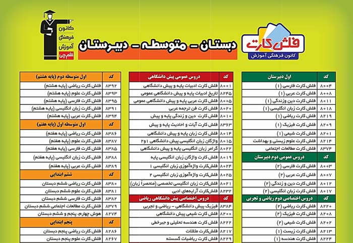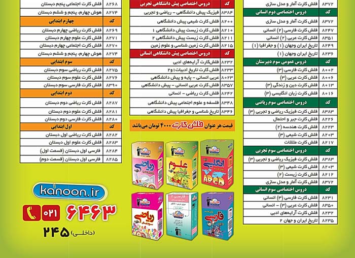 "فلش کارت" های کانون برای تمام درس ها از دبستان تا کنکور