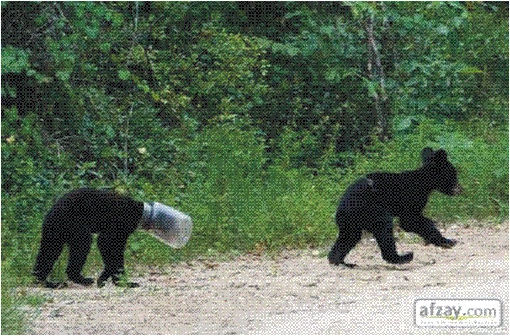 بچه خرسي که 10 روز سرش در ظرف آب گيرکرده بود