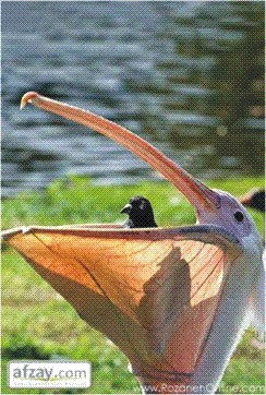 يک عکاس خوش ذوق به نام پل منسفيلد موفق شد در پارکي در لندن از لحظات بلعيده شدن يک کبوتر توسط پليکان و تنها شانس فرار آن تصاوير شگفت انگيزي تهيه کند. اين پرنده لحظه اي هم که فرصت فرار داشت شروع به تماشاي مناظر اطراف کرد.