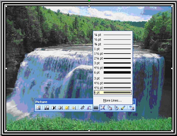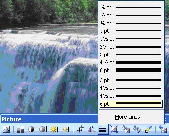 اگر روي Line Style کليک کنيم، خطوط زير نمايان ميشود که با انتخاب هر يک از آنها، کادري دور تصوير ما کشيده ميشود.