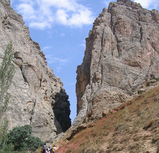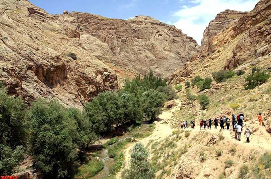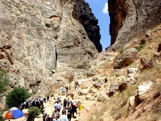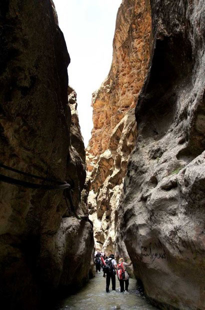 در ابتدای پس از یک پیاده روی کوتاه مدت در سر بالایی کوه ، به ابتدای تنگه رسیده که باید مسیر را در آب رود ادامه داد.