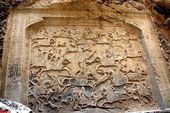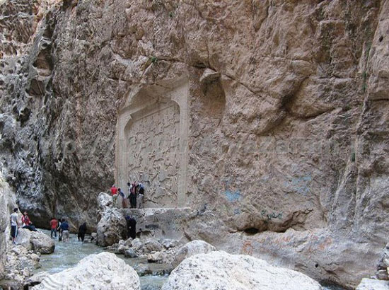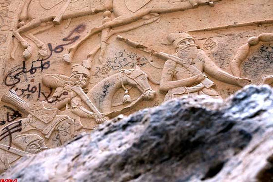 کتیبه واقع در تنگه ساواشی دارای ابعاد شش در هفت متر است که وقایع زمان فتحعلی شاه دور تا دور کتیبه روایت شدهاست. بزرگترین نقش برجسته این کتیبهها، نقش شکارگاه با تصویر اسب، نیزه و شکارهایش است که در اطراف آن میتوان عباس میرزا، علی قلی میرزا و علی نقی میرزا پسران فتحعلی شاه و همچنین نوادگانش را در حال شکار دید. این کتیبه که حدودا ۱۸۵ سالهاست به گونهای در دل کوه حک شده که از بارش باران و تابش آفتاب در امان بودهاست اما صنعت گردشگری به آن آسیب وارد نمودهاست.