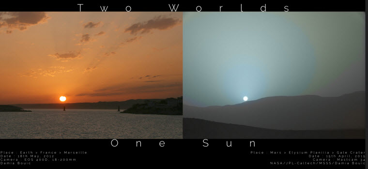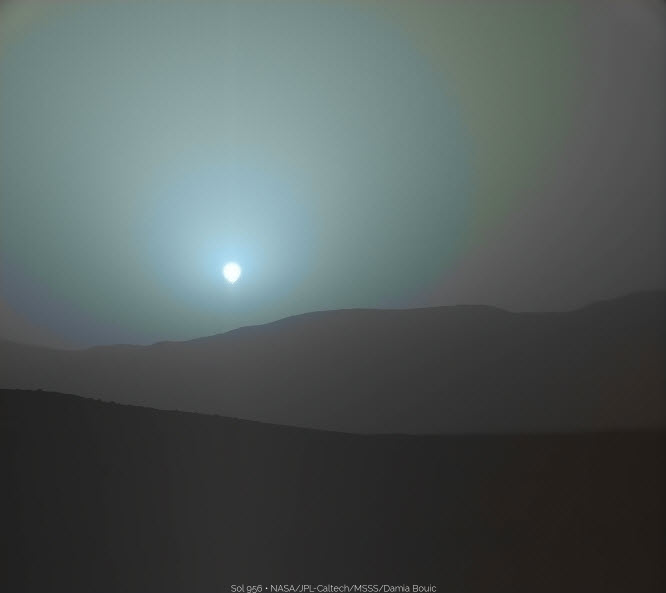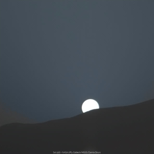 ۱۵ آوریل (یعنی حدود ۳ هفته) پیش مریخ نورد کنجکاوی یا Curiosity یکی از دوربینهای خود به نام MASTCAM را به سمت منظره غروب خورشید گرفت و تعدادی عکس به زمین ارسال کرد.