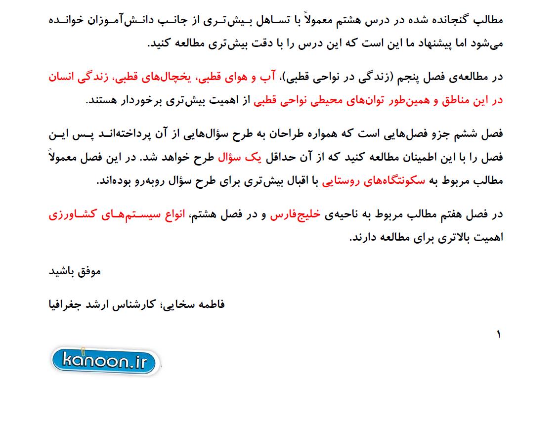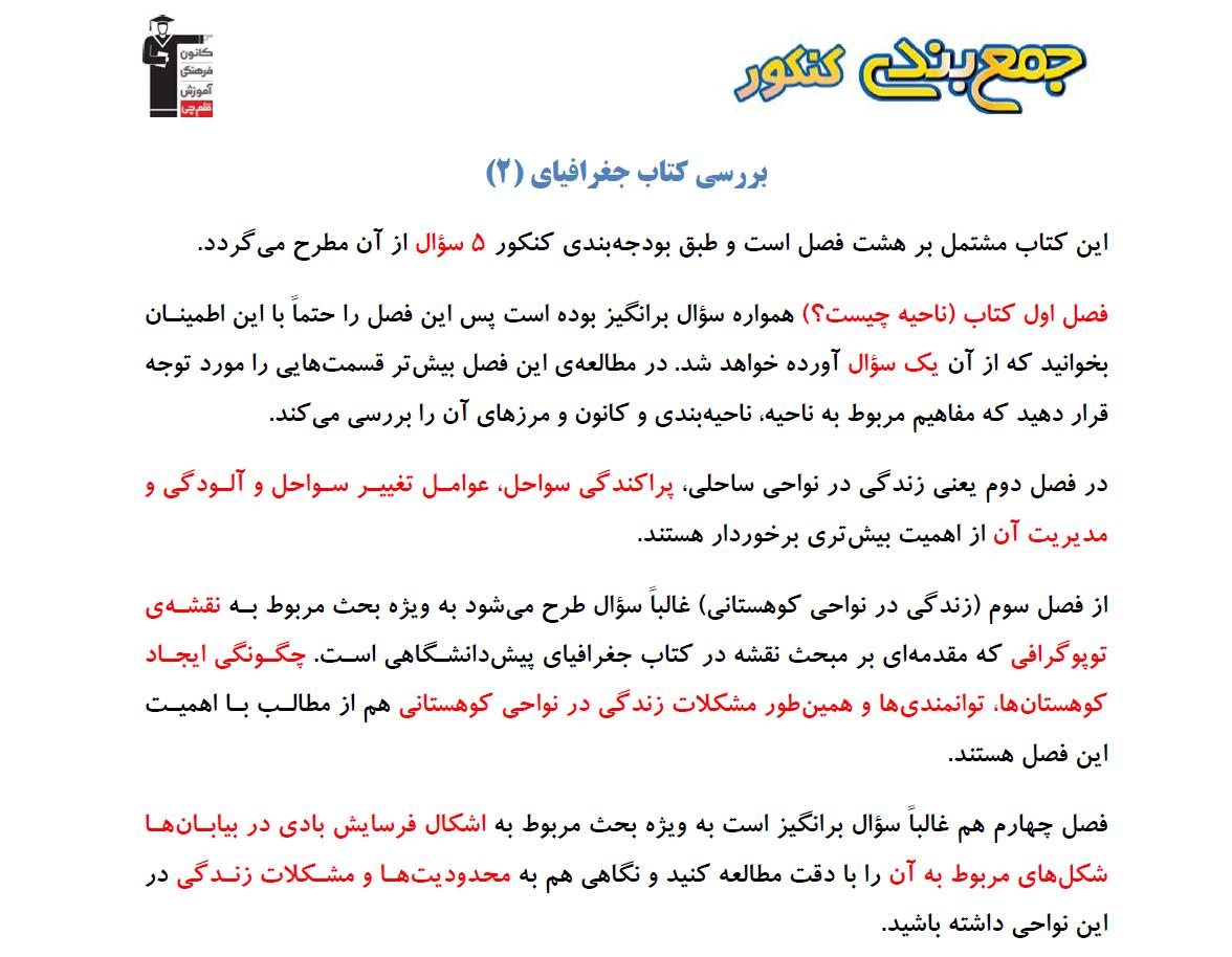 این کتاب مشتمل بر هشت فصل است و طبق بودجهبندی کنکور 5 سؤال از آن مطرح میگردد.