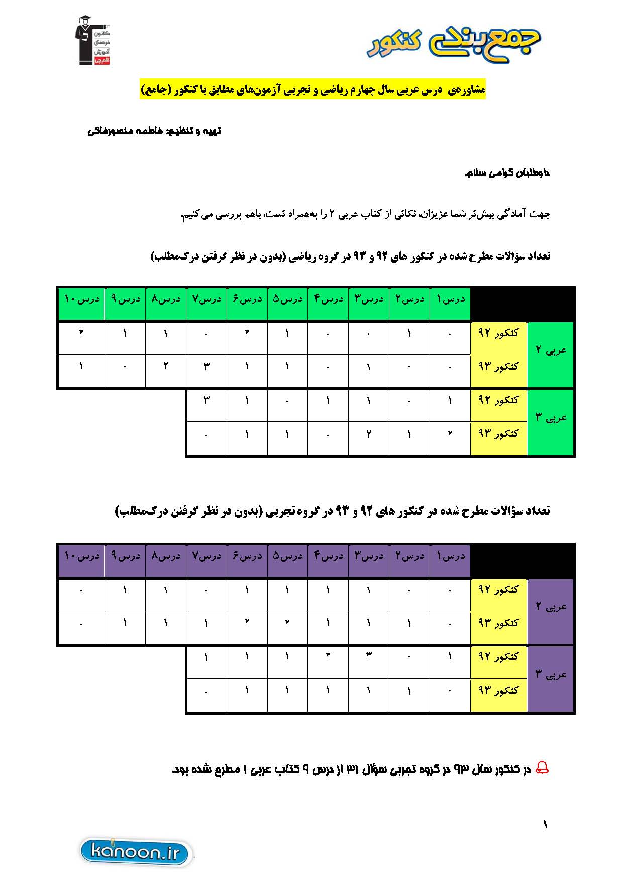 کارنامه کنکور بر اساس رشته و دانشگاه