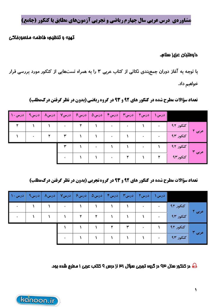 مطالب درسی کنکوری ها