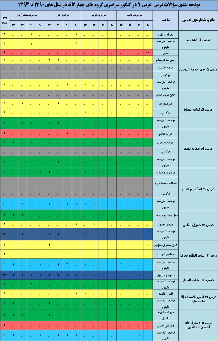 بودجهبندی عربی 2 در کنکورهای 90 تا 93