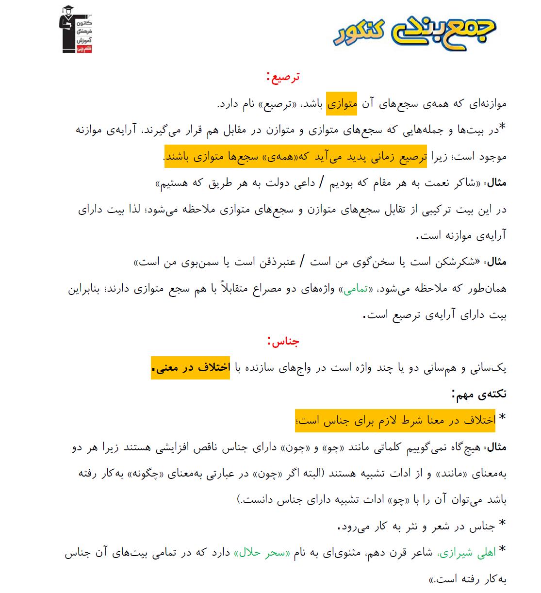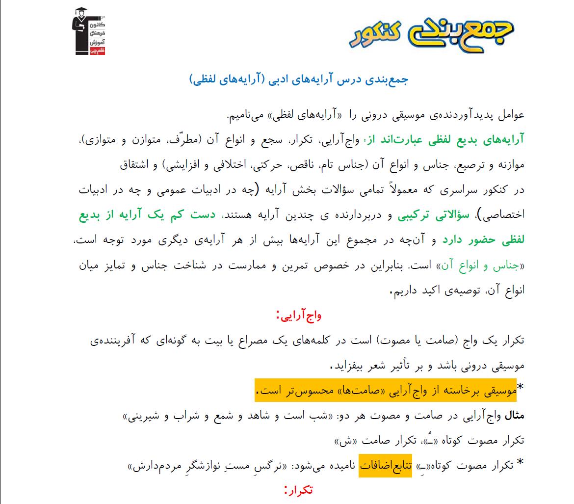 جمعبندی درس آرایههای ادبی (آرایههای لفظی)