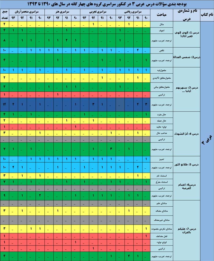 بودجهبندی عربی 3 در کنکورهای 90 تا 93