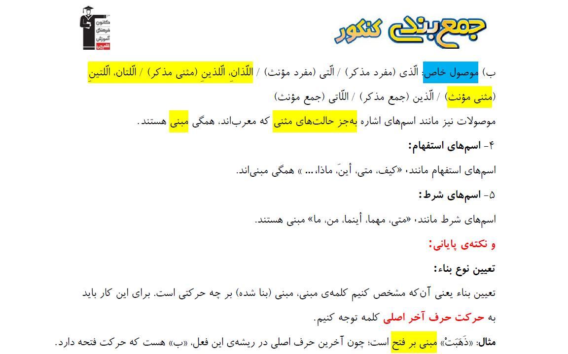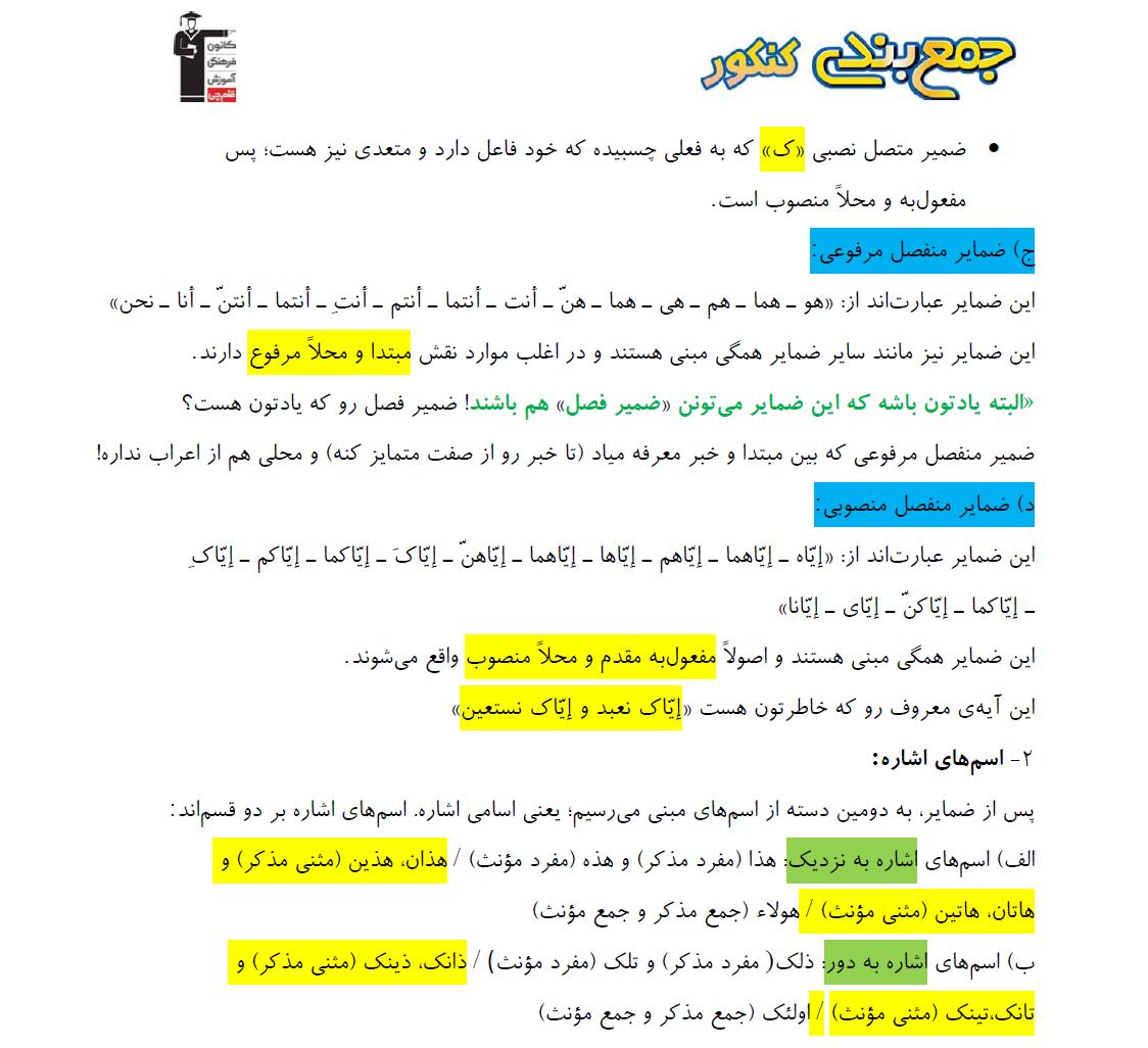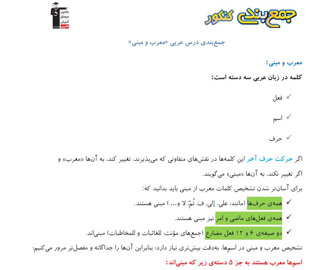 این مطلب به شما کمک میکند تا بتوانید درس عربی را به شکل مؤثرتری جمعبندی کنید.