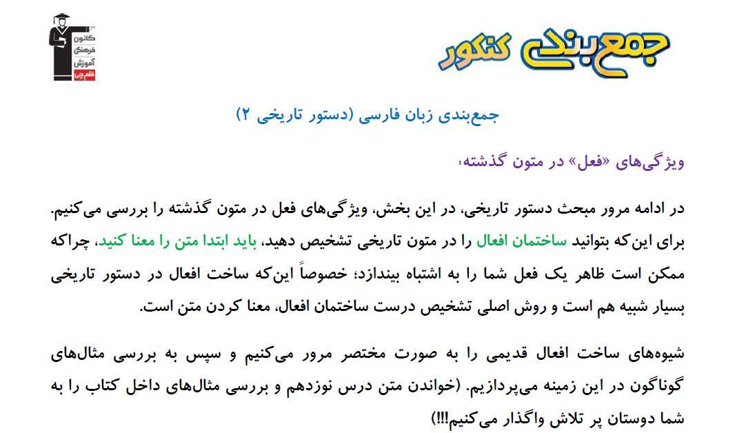 جمعبندی زبان فارسی (دستور تاریخی 2)
