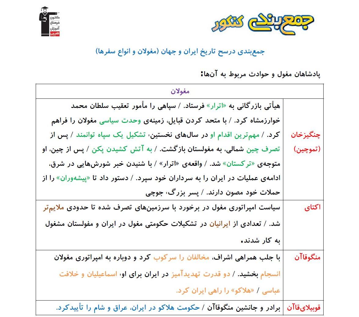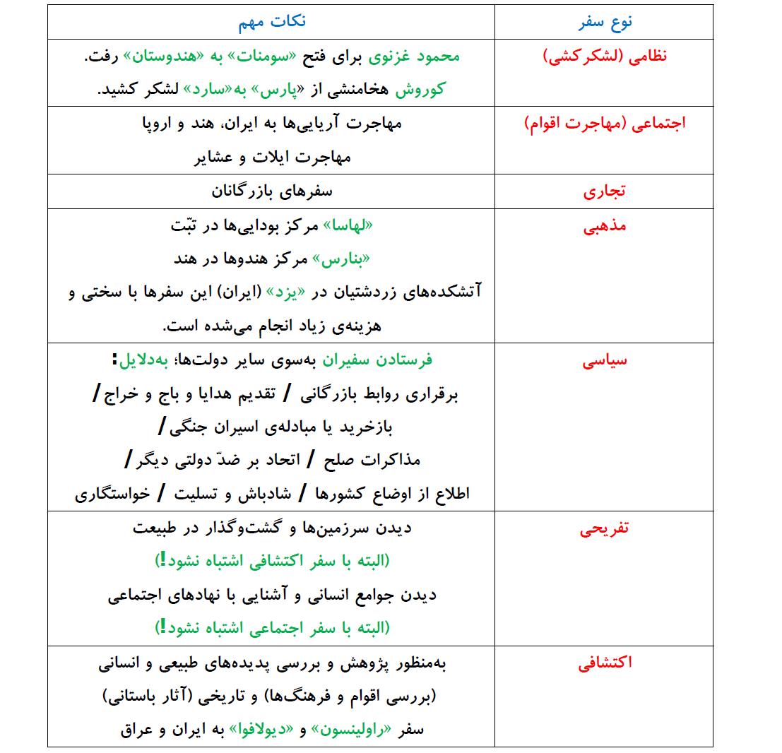 جمعبندی درسح تاریخ ایران و جهان (مغولان و انواع سفرها)