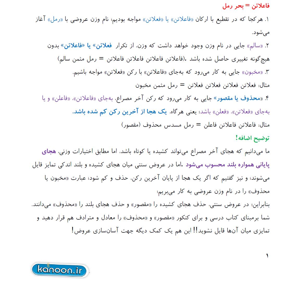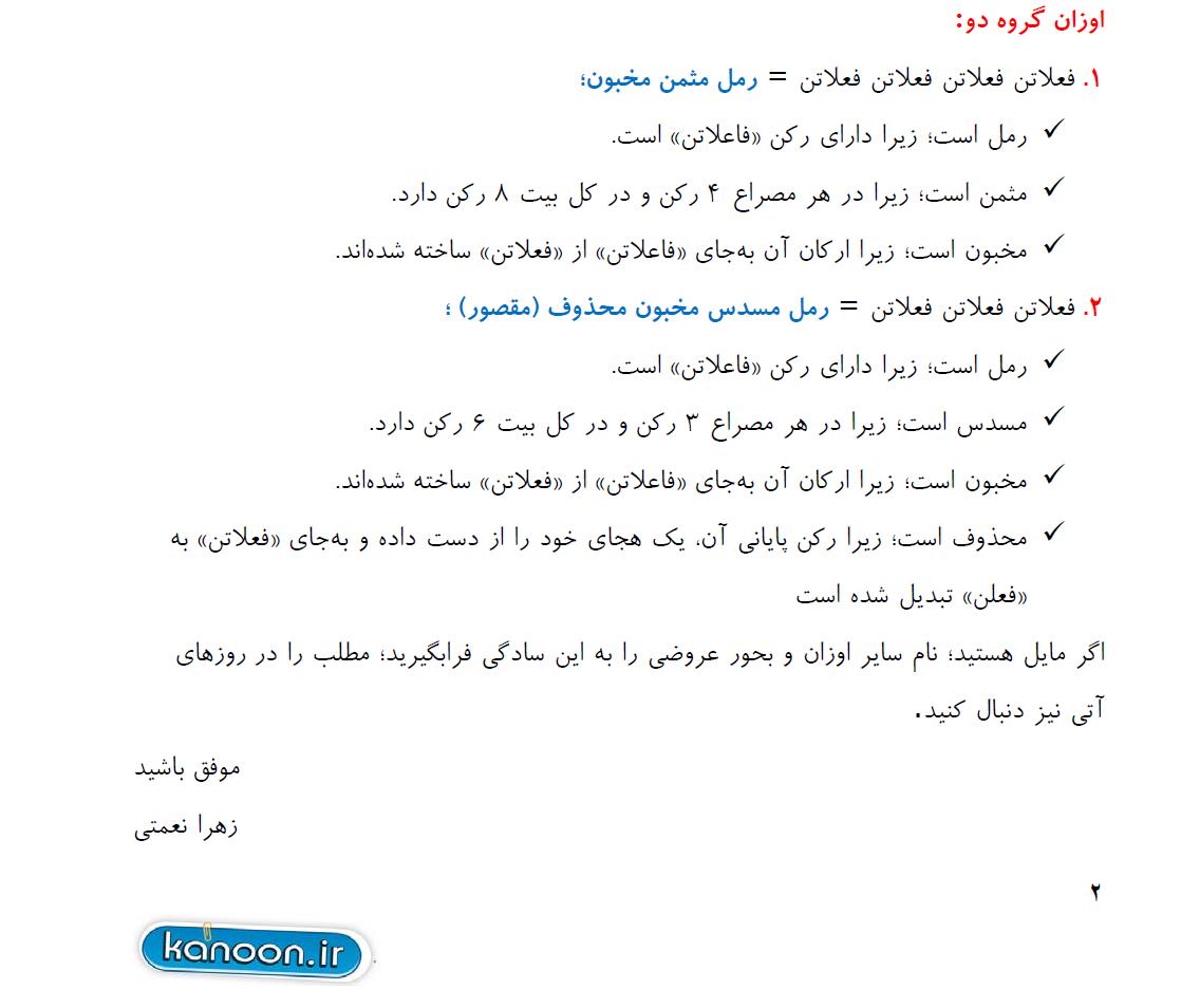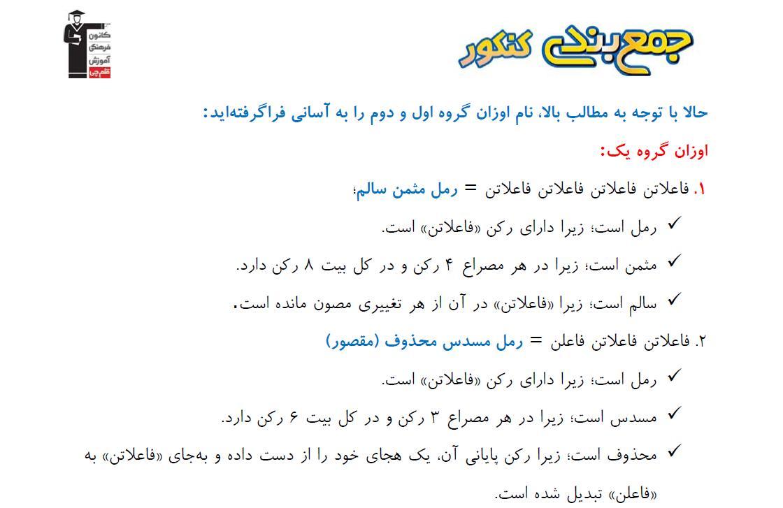 جمعبندی ادبیات فارسی سالچهارم (آشنایی با نام اوزان عروضی(1))