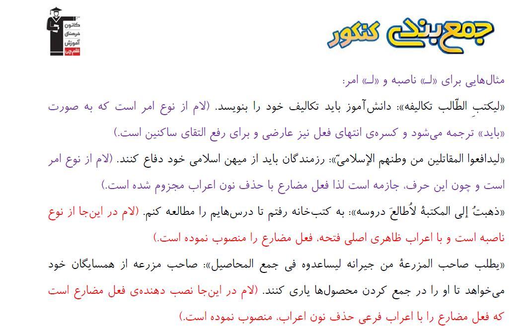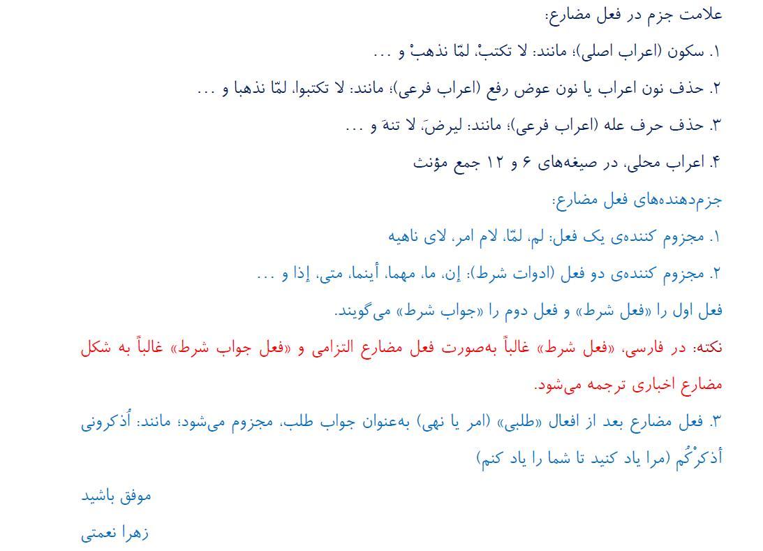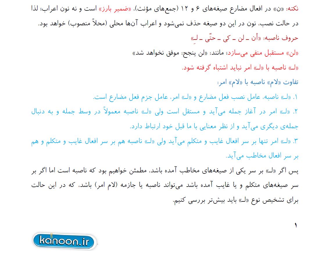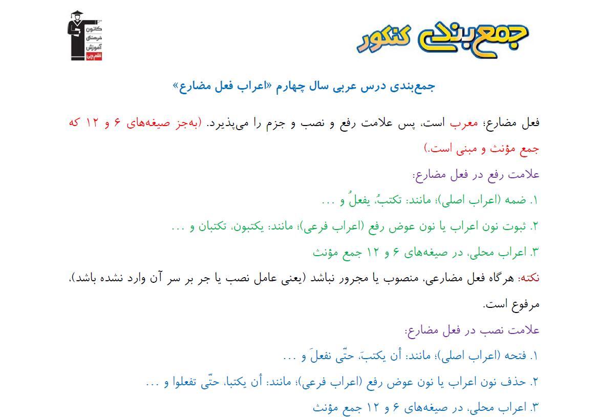 جمعبندی درس عربی سال چهارم «اعراب فعل مضارع»