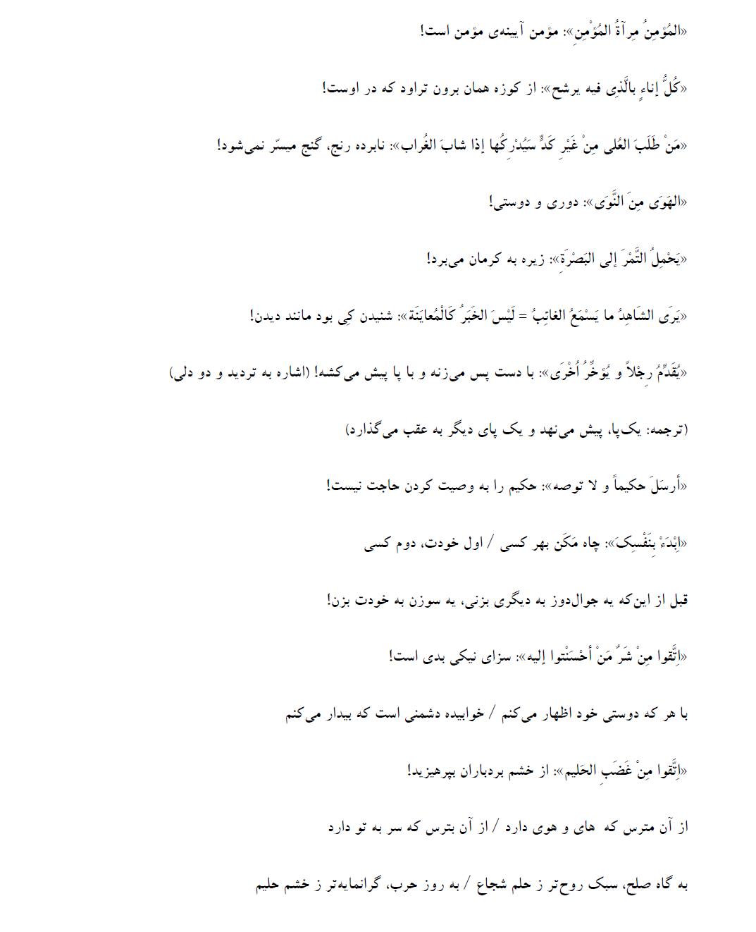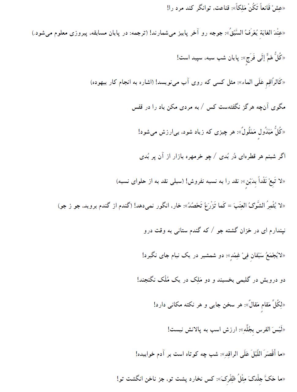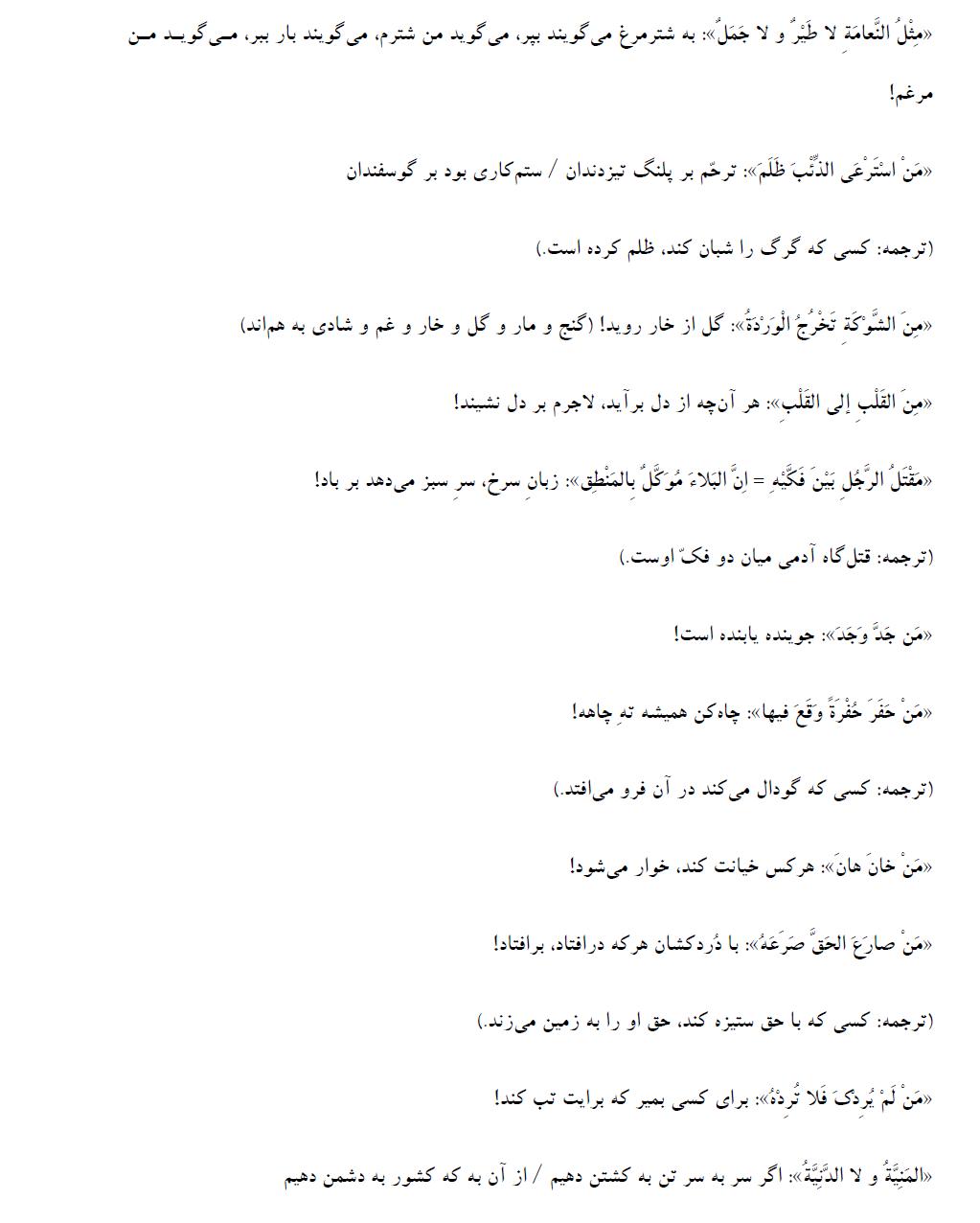 آشنایی با برخی ضربالمثلهای عربی و معادل آنها در فارسی