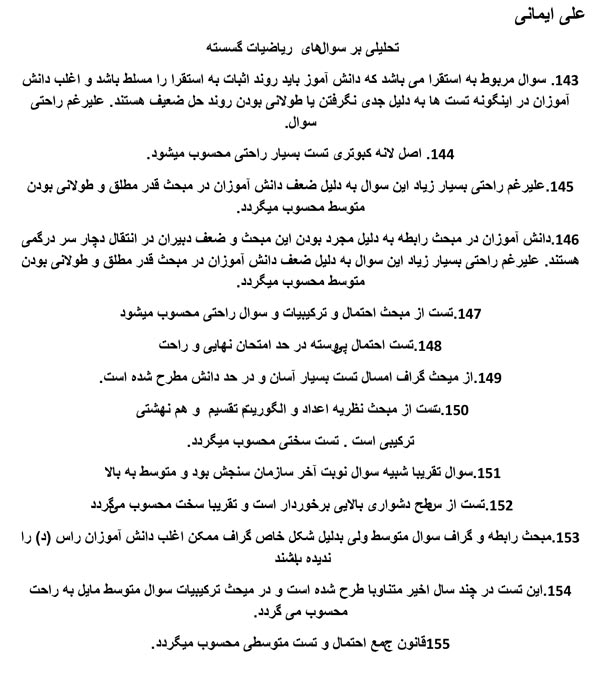 علی ایمانی : تحلیلی بر سوالات گسسته کنکور ریاضی 94