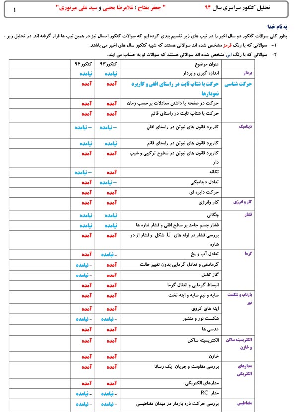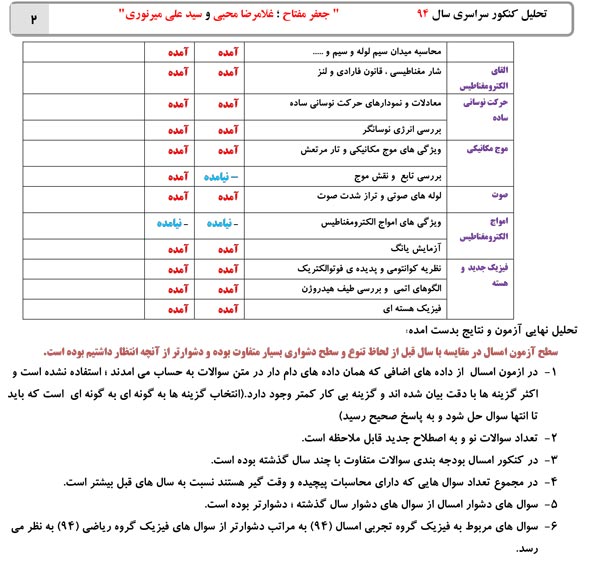 تحلیل کنکور 94