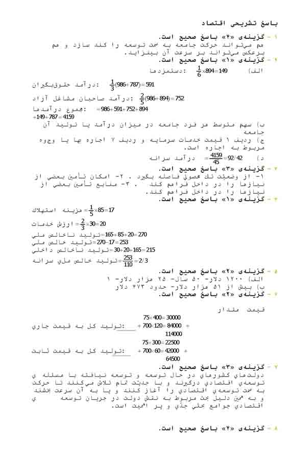 پاسخ تشریحی اقتصاد کنکور انسانی 94