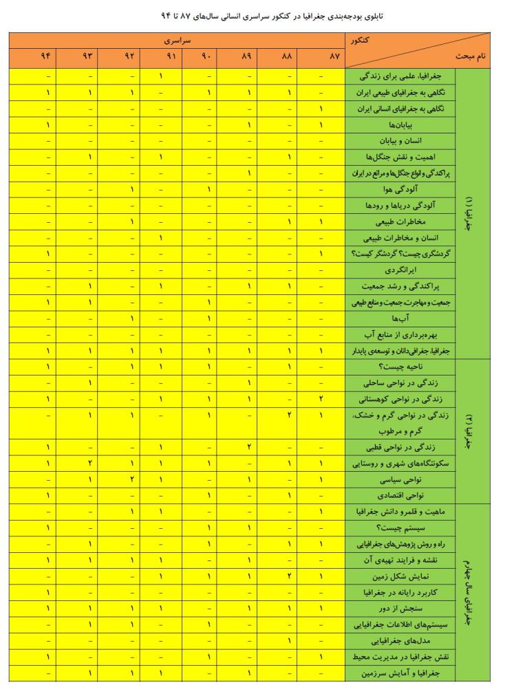 بودجهبندی جغرافیا در کنکور سراسری انسانی سالهای 87 تا 94