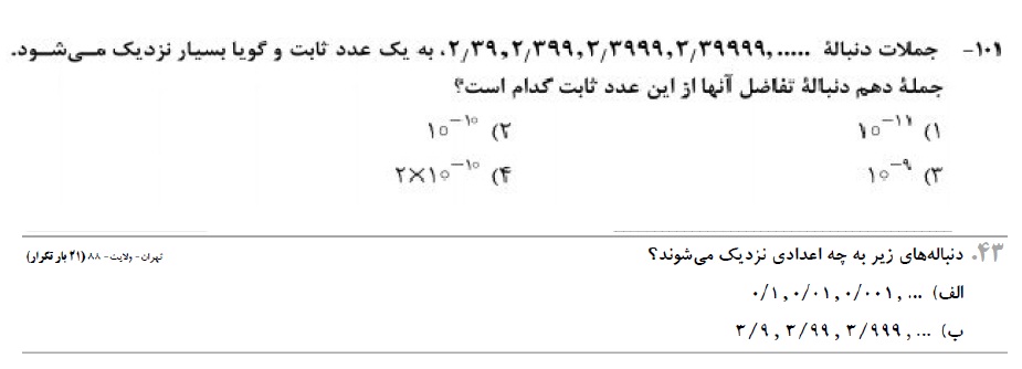سوال 101 کنکور ریاضی و سوال 43کتاب پرتکرار