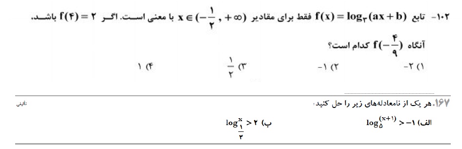 سوال 102 کنکور ریاضی و سوال 167کتاب پرتکرار