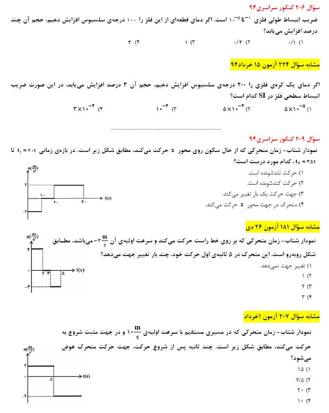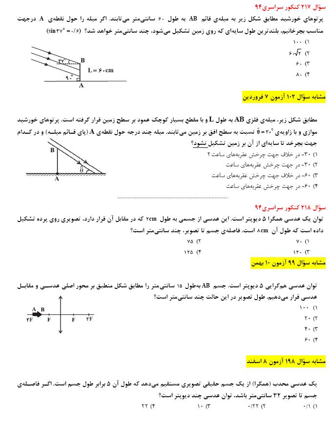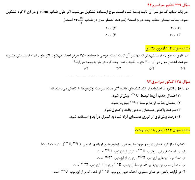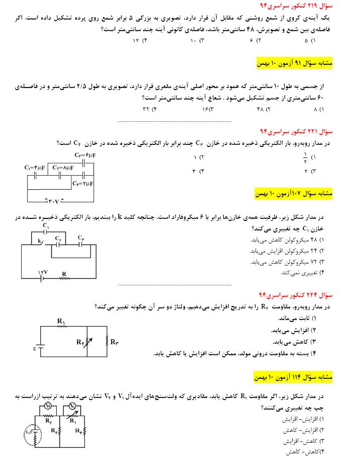 مشابهت آزمونهای کانون با کنکور 94 : فیزیک تجربی
