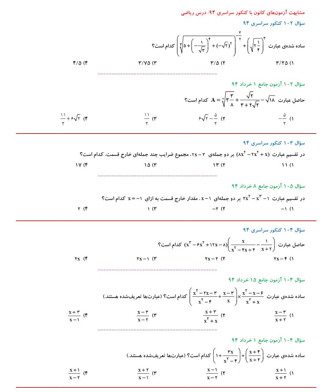 مشابهت آزمونهای کانون با کنکور سراسری 94: درس ریاضی