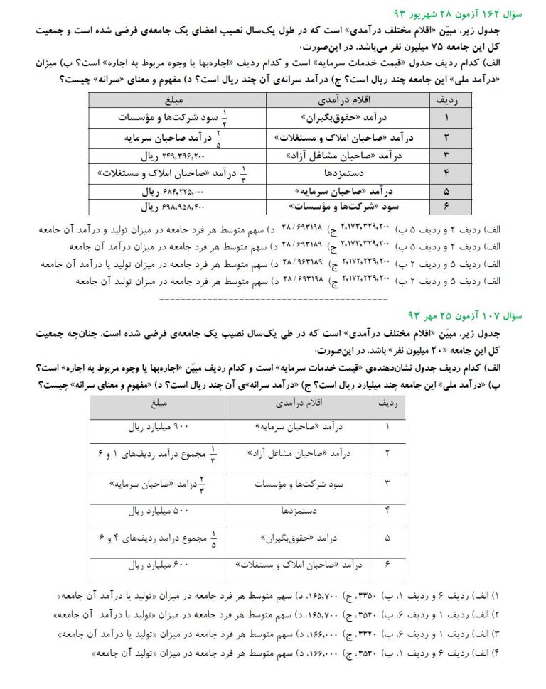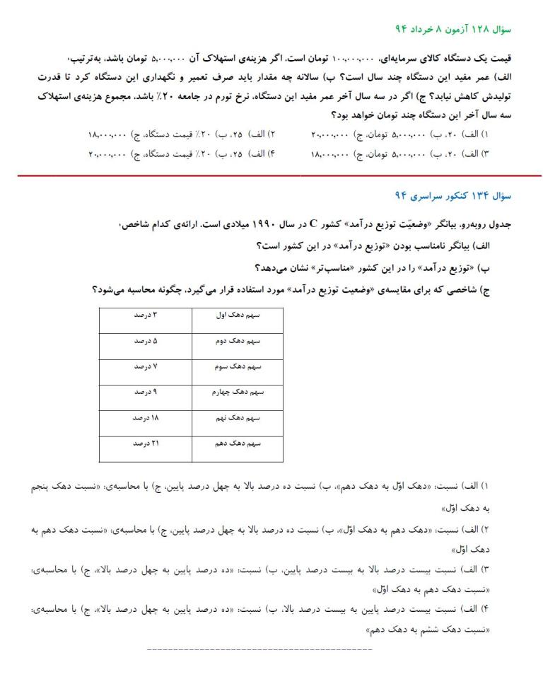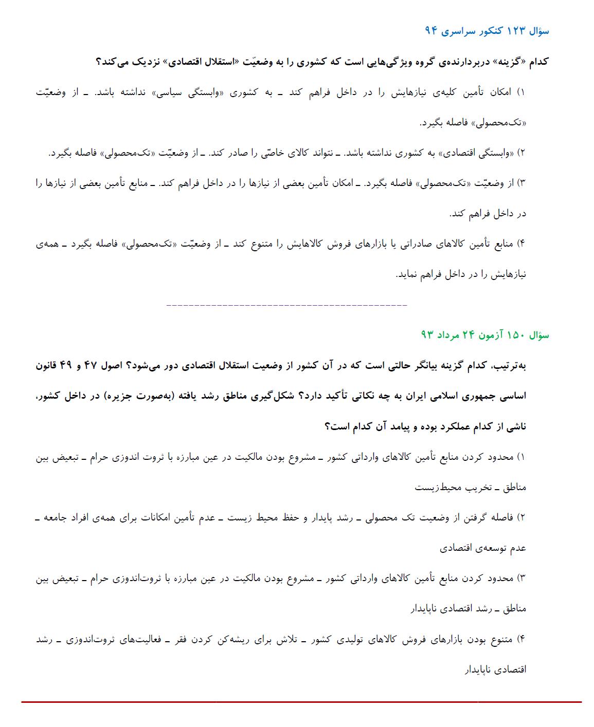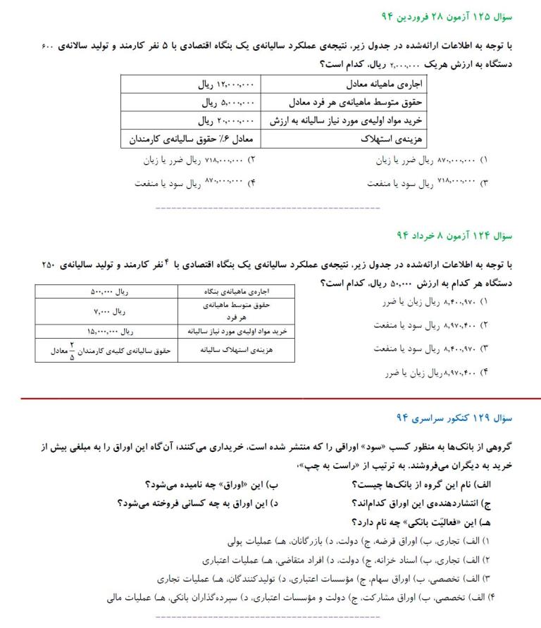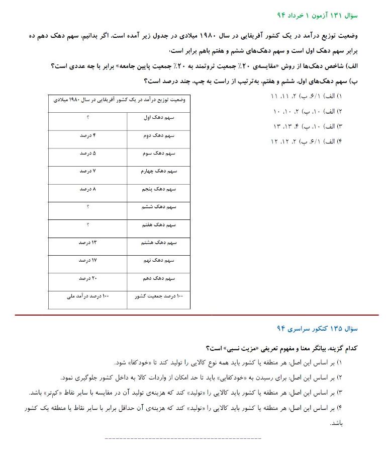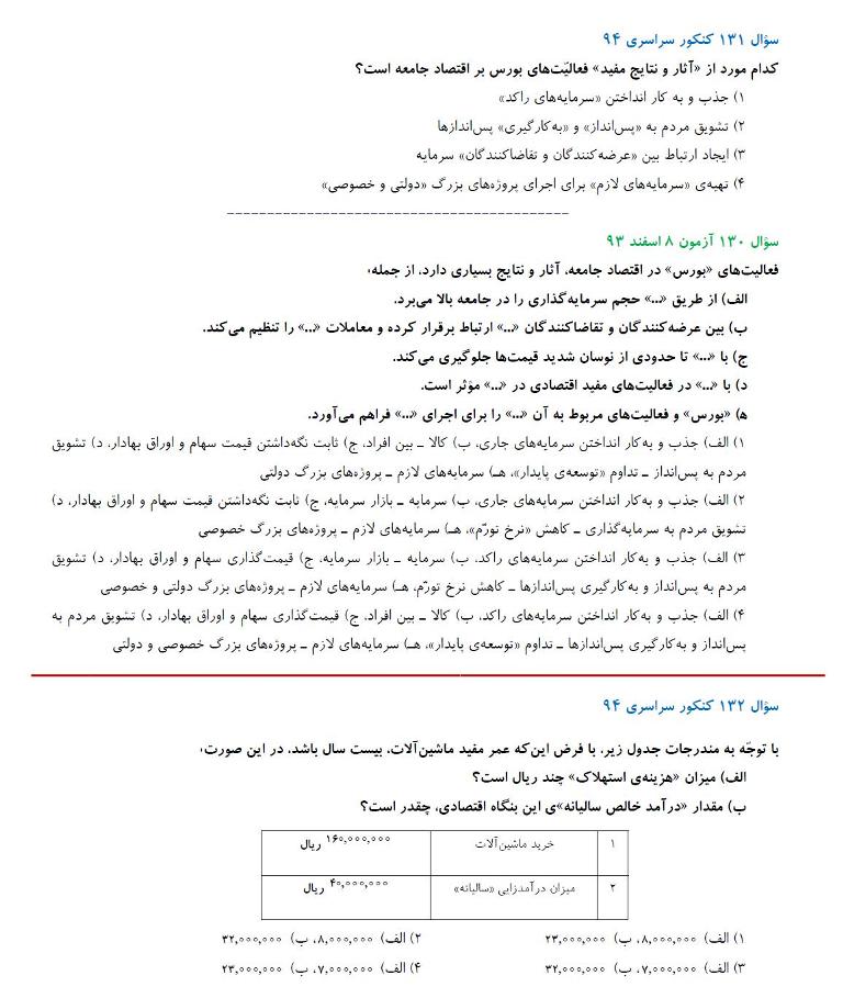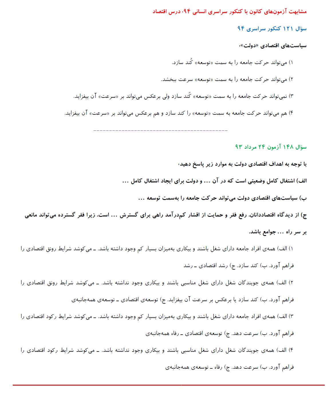 مشابهت آزمونهای کانون با کنکور سراسری انسانی 94: درس اقتصاد