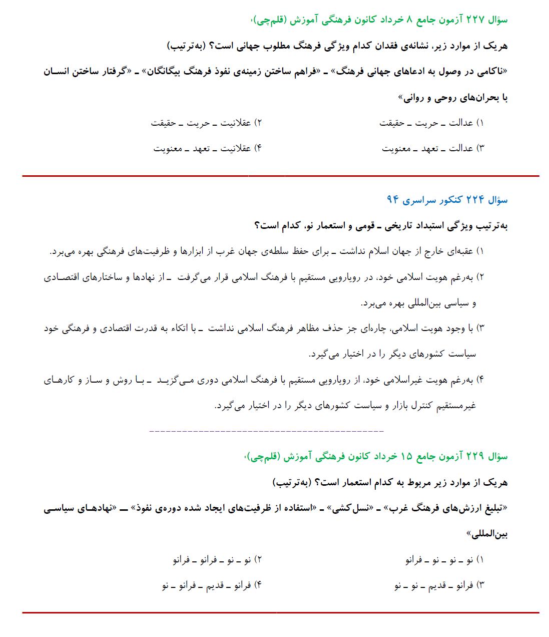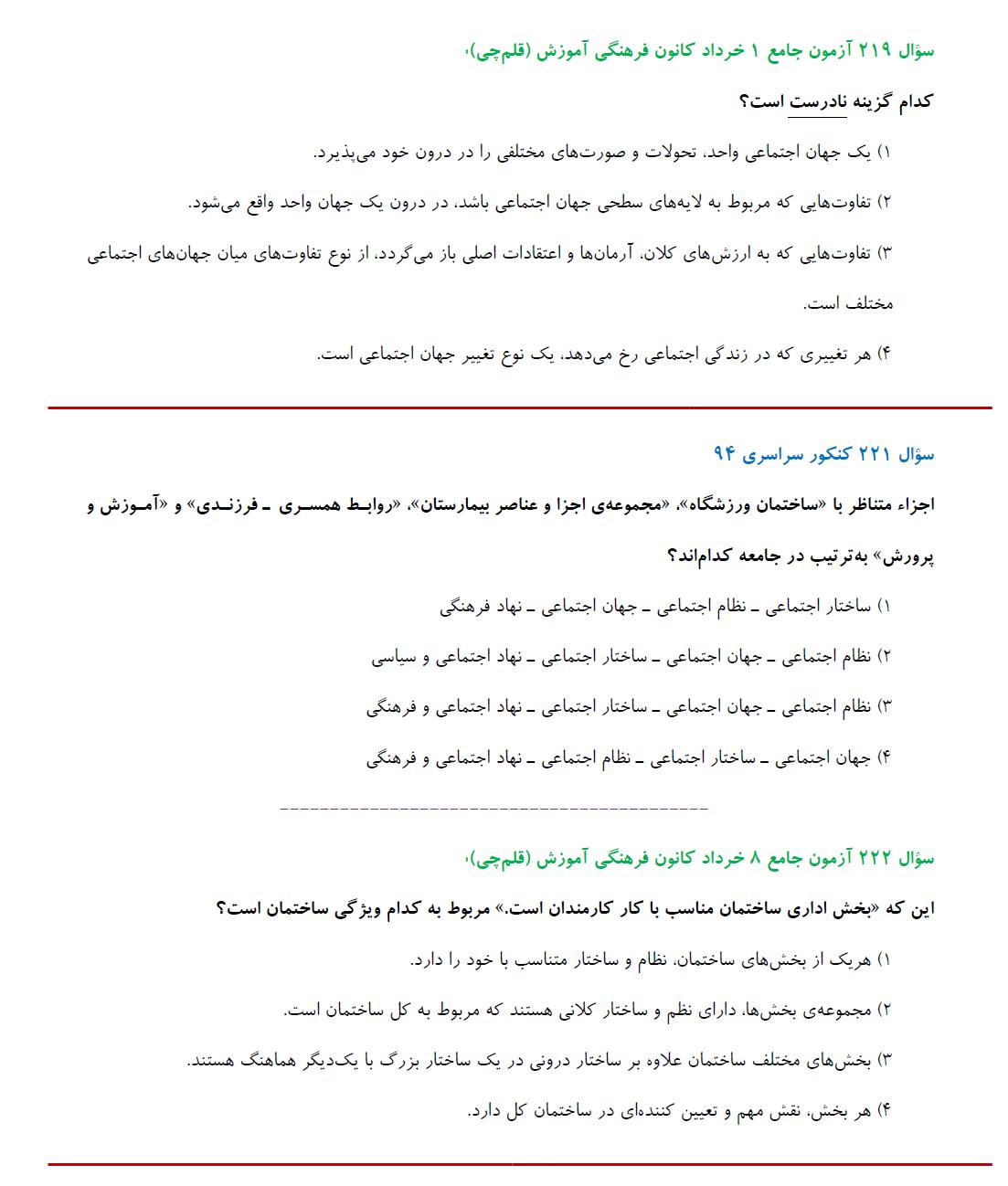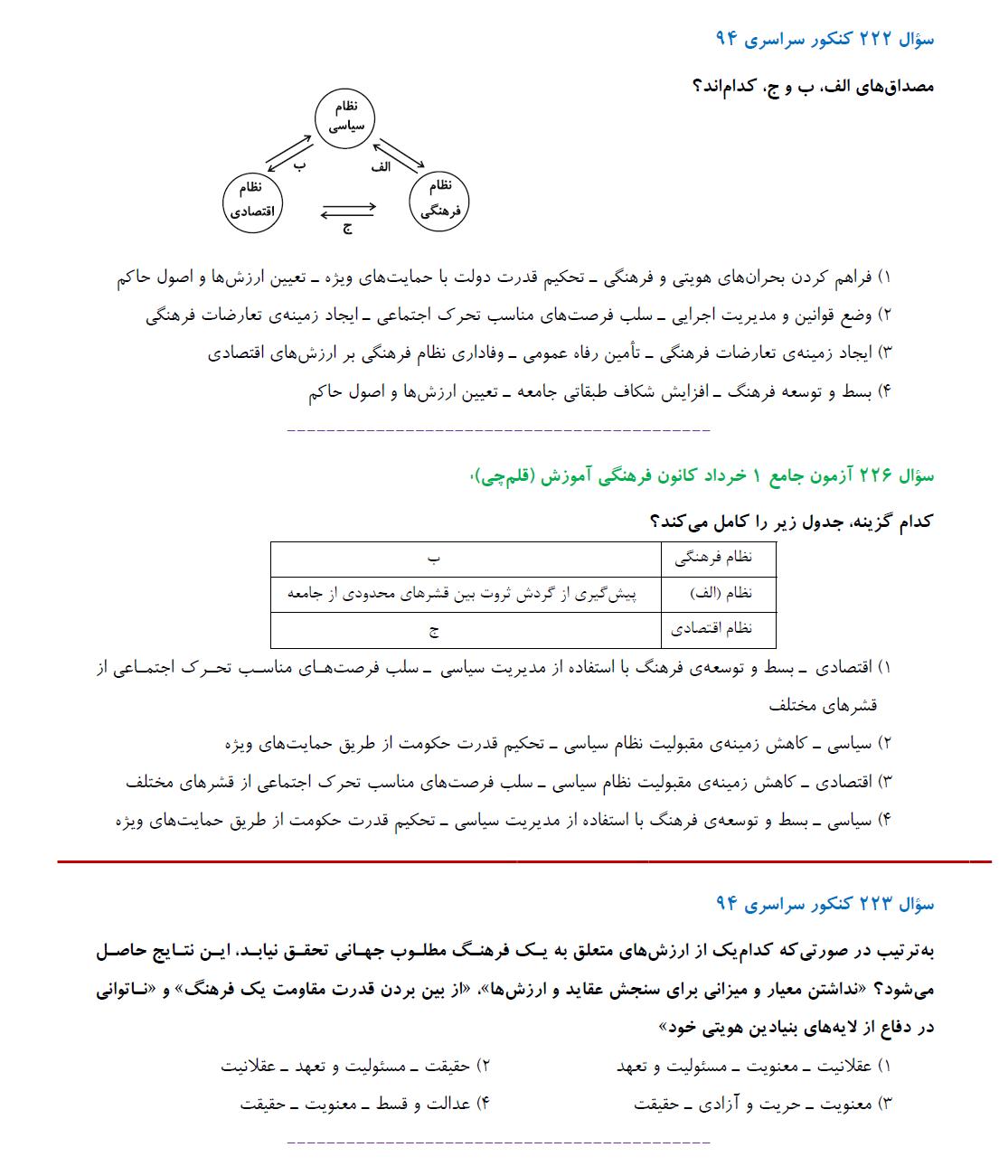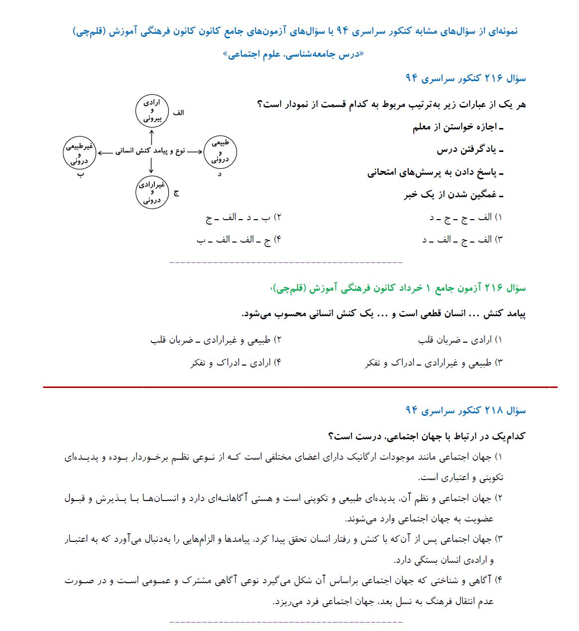 مشابهت آزمونهای جامع کانون باکنکور سراسری 94:درس علوم اجتماعی