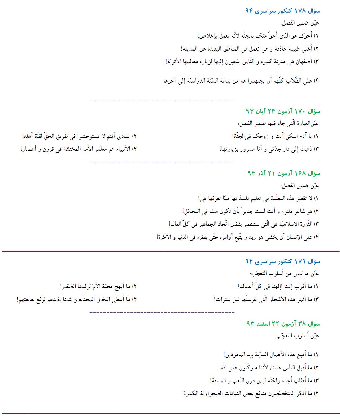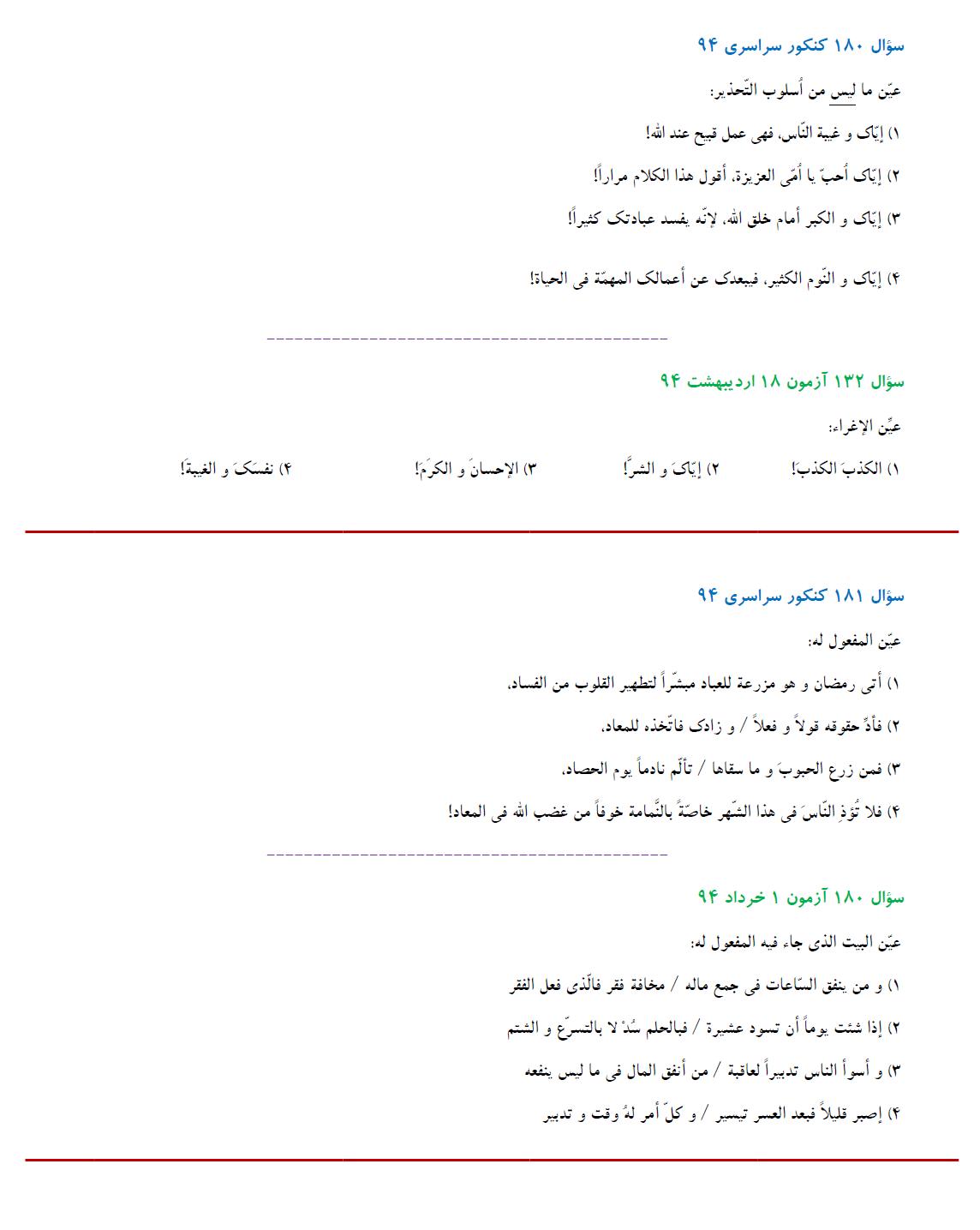 مشابهت آزمونهای کانون باکنکورسراسری انسانی94:درس عربی اختصاصی