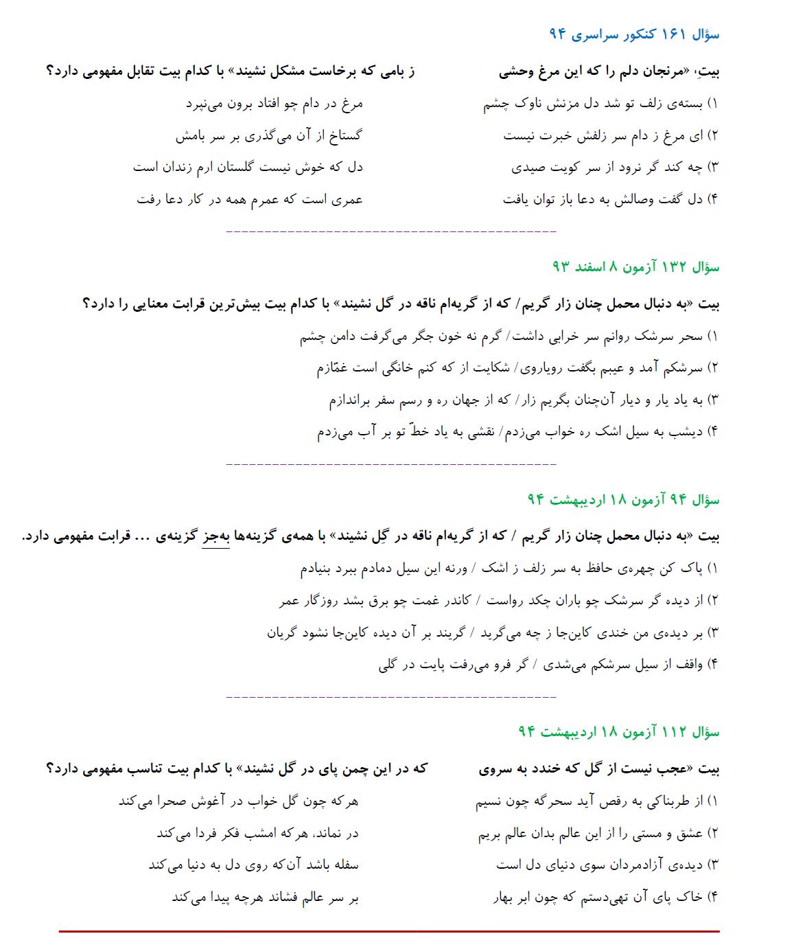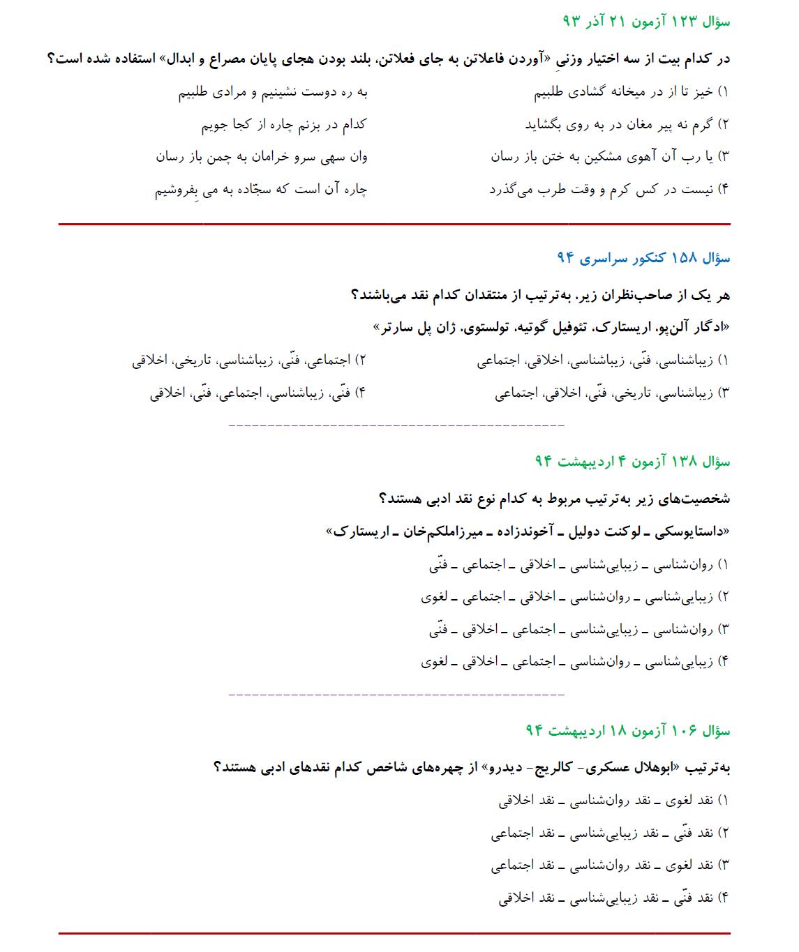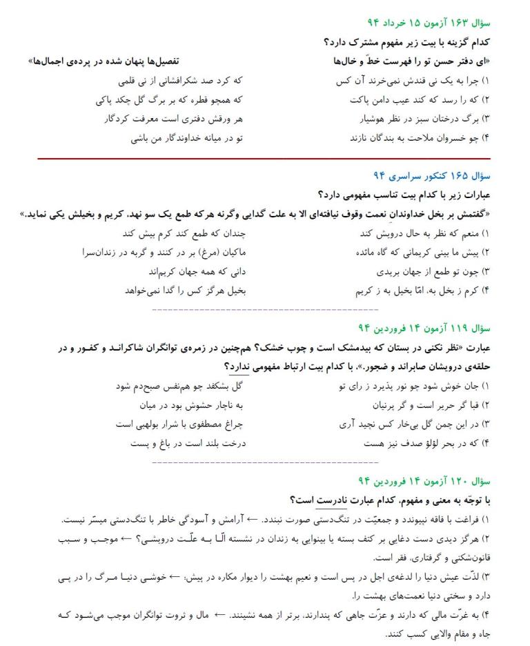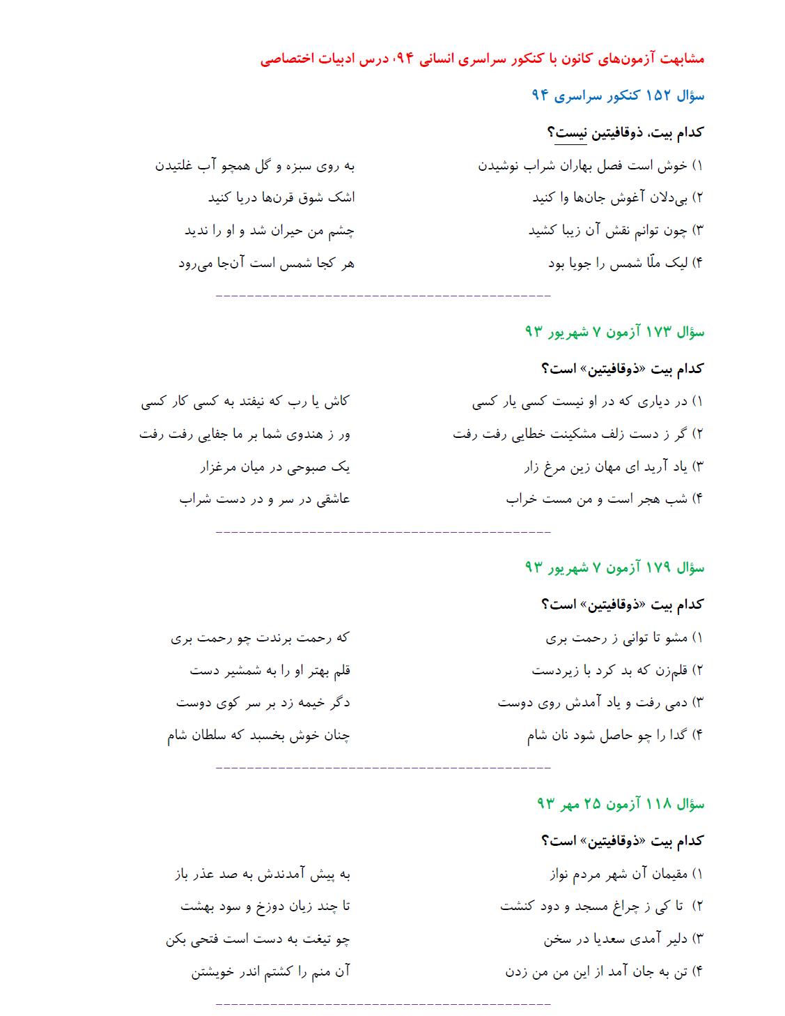 مشابهت آزمونهای کانون باکنکور سراسری انسانی94: ادبیات اختصاصی