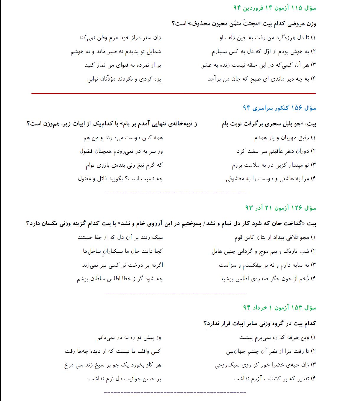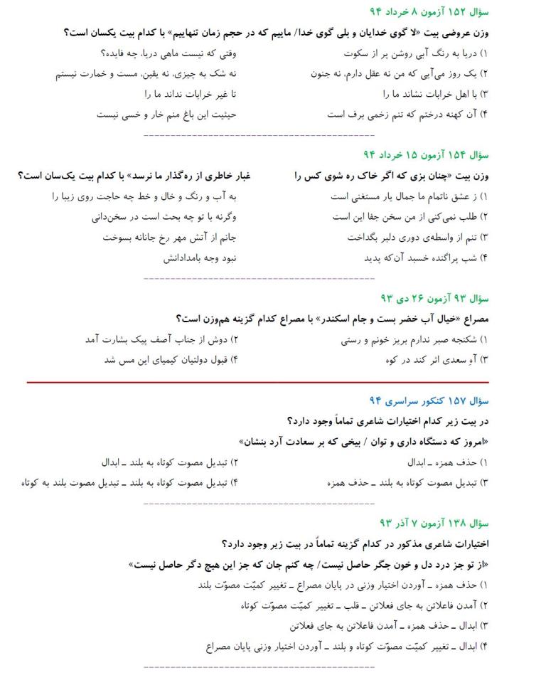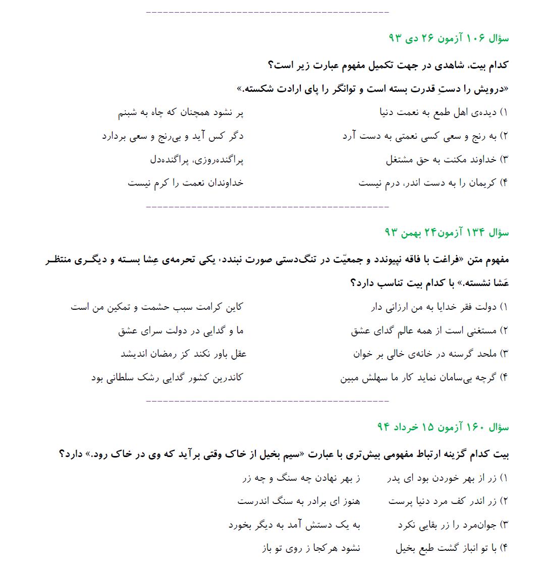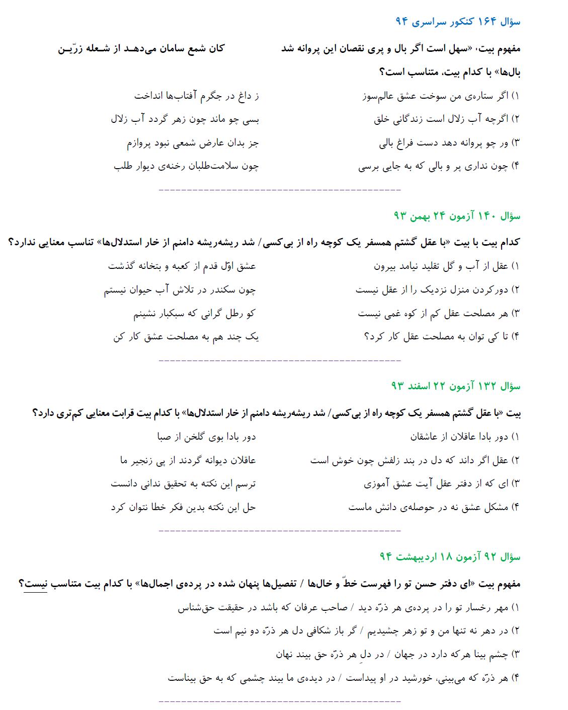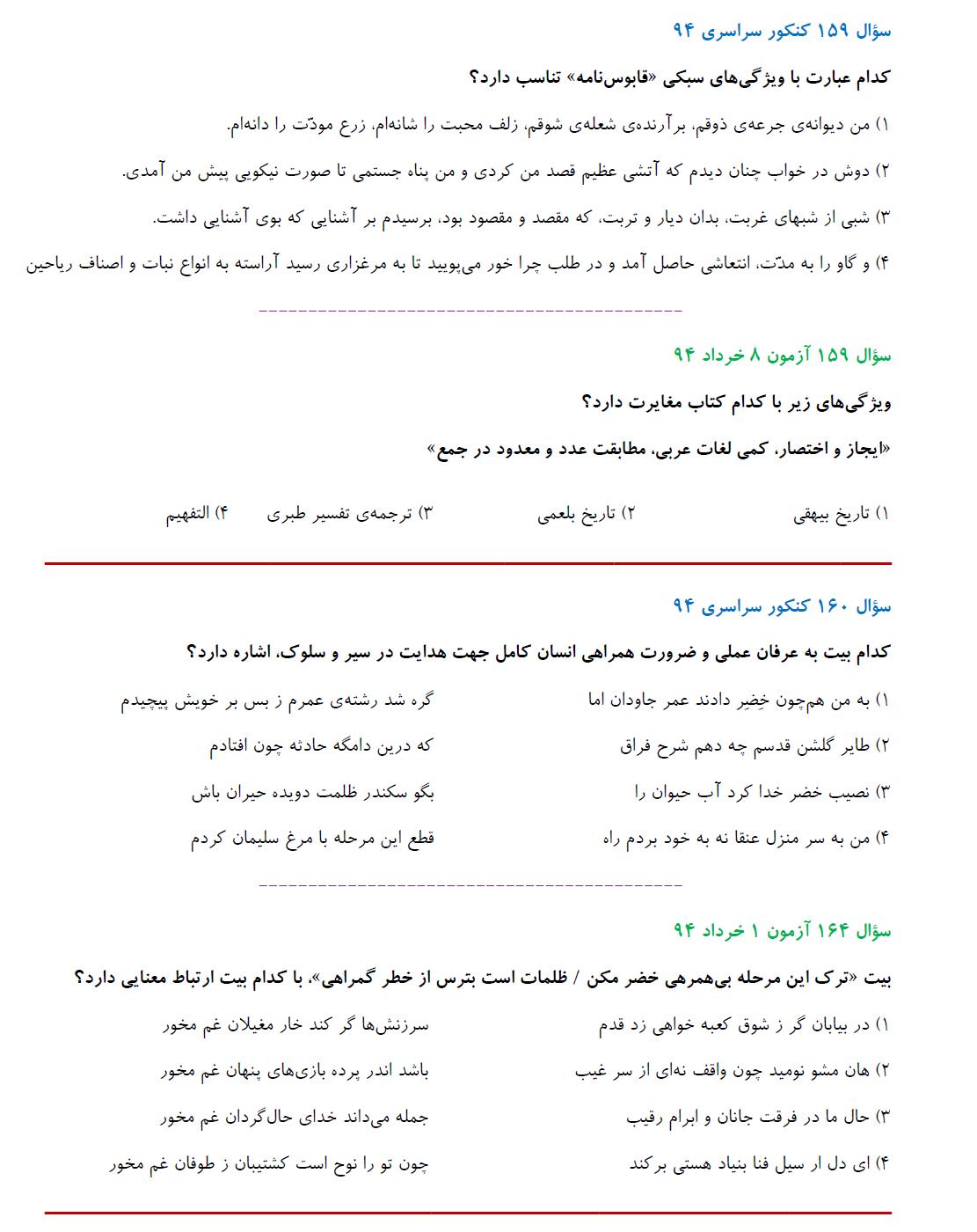 مشابهت آزمونهای کانون باکنکور سراسری انسانی94: ادبیات اختصاصی