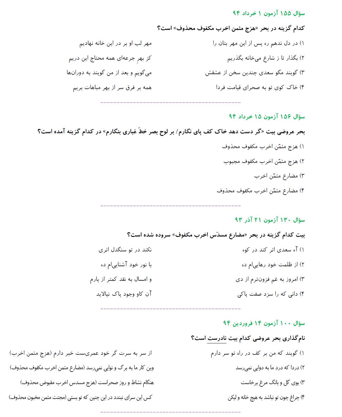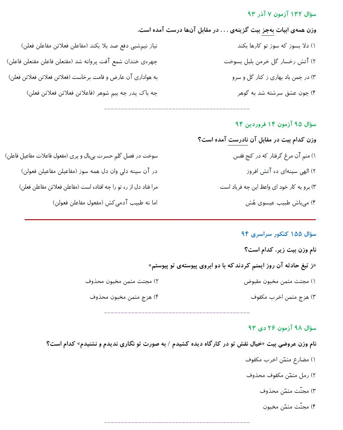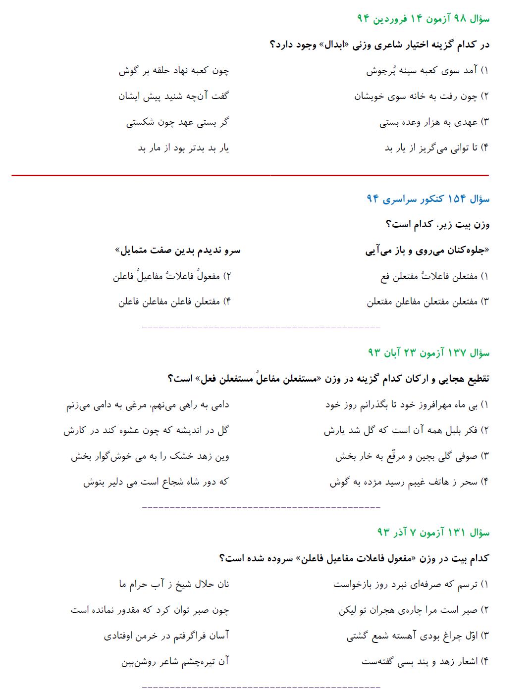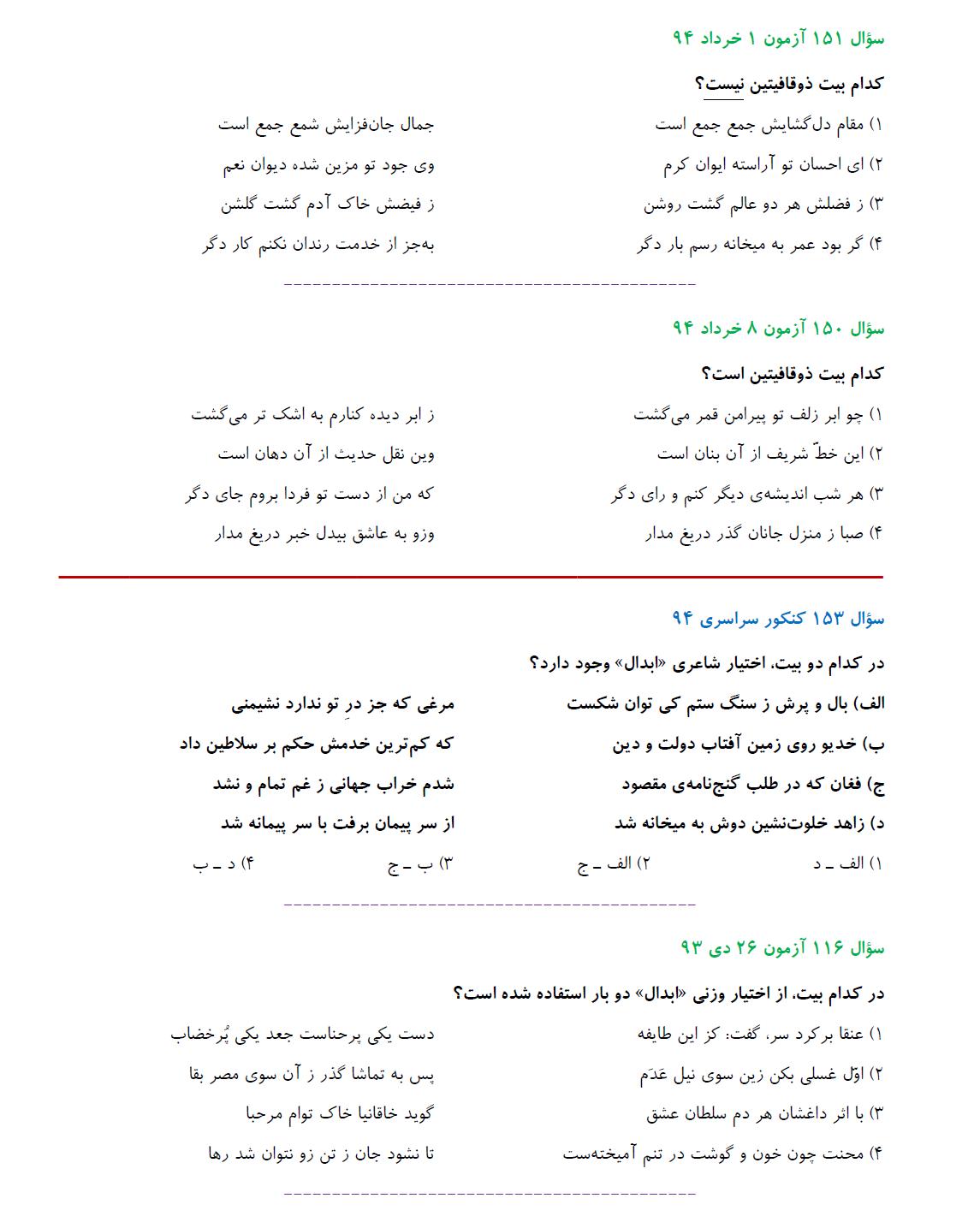 مشابهت آزمونهای کانون باکنکور سراسری انسانی94: ادبیات اختصاصی