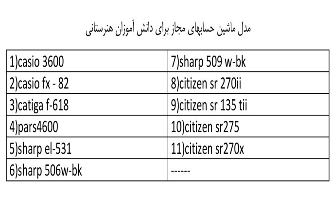 دانش آموزان عزیز هنرستانی هرچه سریعتر یکی از این مدل ماشین حساب ها را تهیه کنید و در آزمون های جامع و سه روز یکبار استفاده نمائید تا دست شما به آن عادت کند.