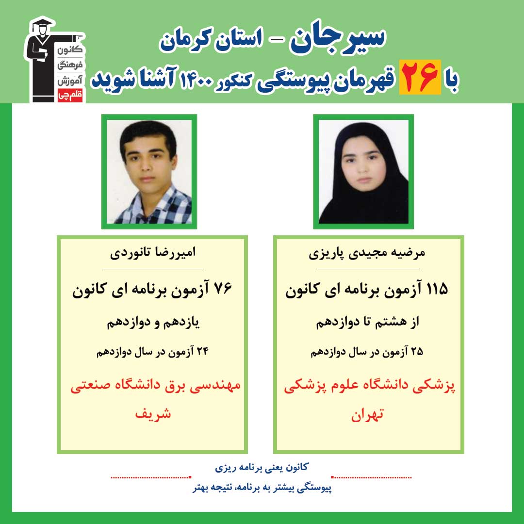 قبولی های تیزهوشان و نمونه دولتی سيرجان 1404