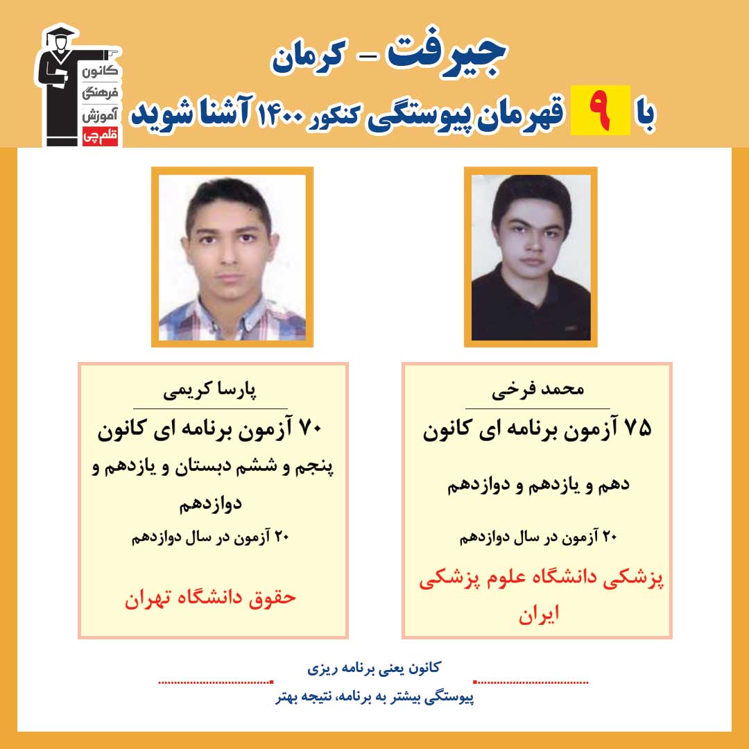 قبولی های تیزهوشان و نمونه دولتی جيرفت 1404